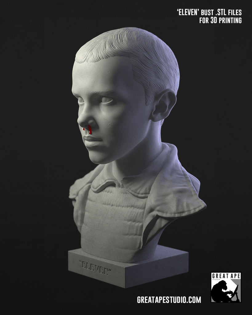 This is a highly accurate 3D digital likeness sculpt of the character 'Eleven' for 3D printing.