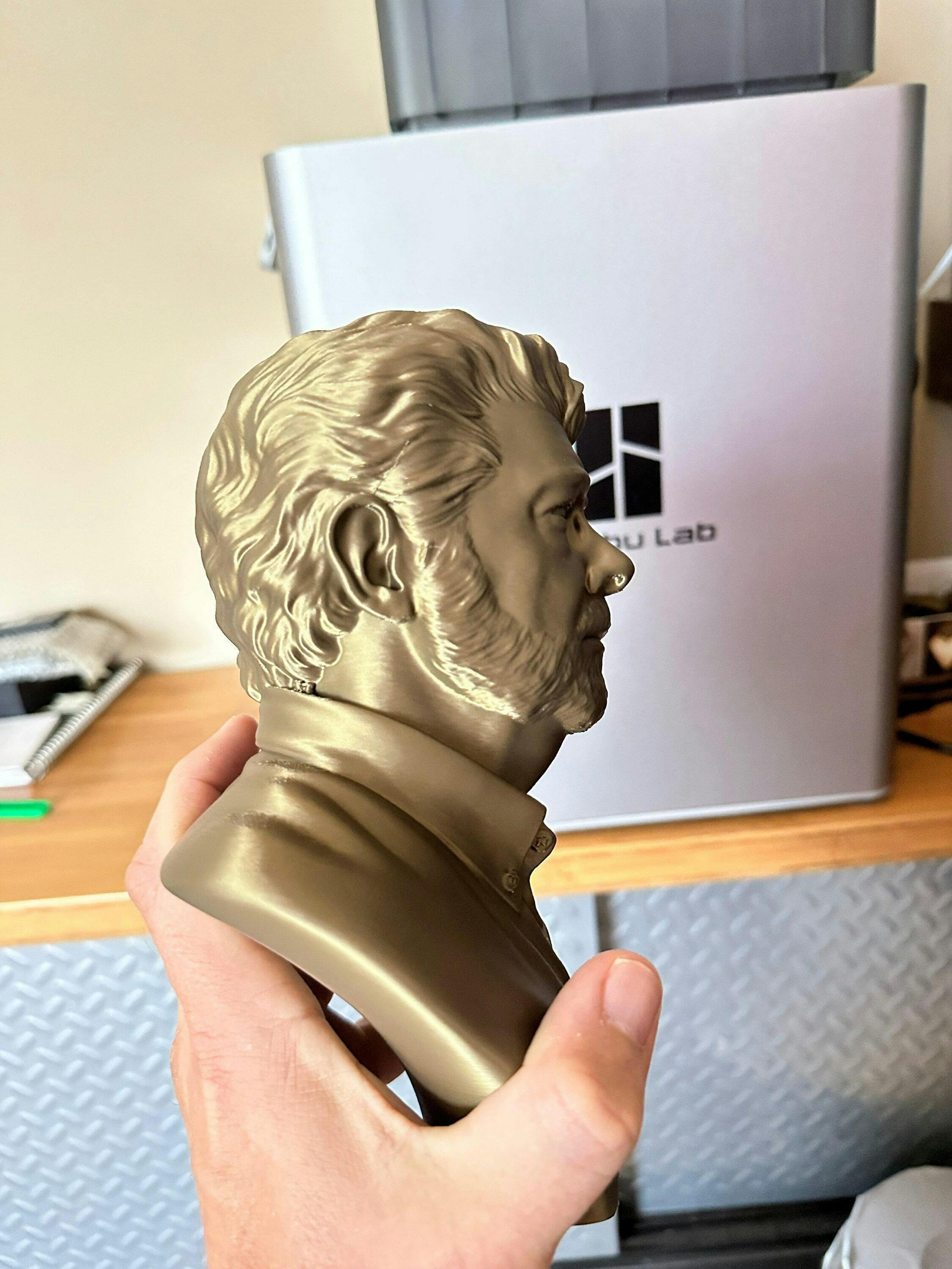 If I had to nitpick, besides the glasses, there are couple of areas that could have more fill to match the overall model quality, a few places on the shoulders and hair areas for instance could use more fill and smoothing out.